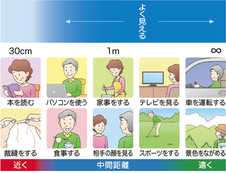 - スポーツや買い物をするときなど、中間距離にピントが合う